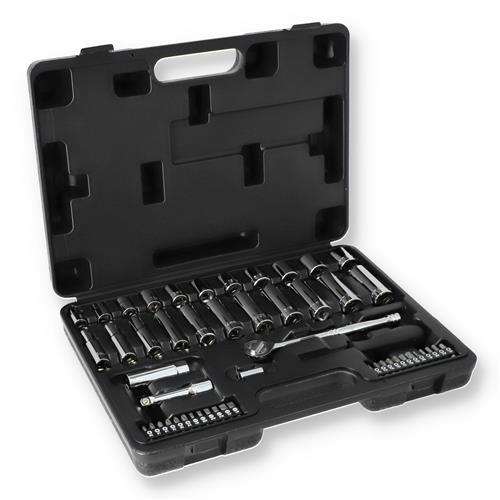 WHOLESALE: 52PC SPLINE SOCKET & BIT SET. IIT. 52pc socket & bit set in chrome vanadium alloy steel for strength and durability. Universal spline sockets in standard and deep wall. Durable storage/carrying case included. Contents: 1 pc 3/8'' drive ratchet (41 teeth), 11 pc 3/8'' drive sockets, 11 pc 3/8'' drive deep wall sockets, 1 pc 3/8'' drive 3'' extension, 24 pc 1/4'' drive bits (1 inch), 1 pc 3/8'' drive 5/8'' spark plug socket, 1 pc 1/4'' drive bit coupler, 1 pc 1/4'' drive spinner handle, Phillips: #0, 2 pc #1, 2 pc #2, #3, Slotted: 1/8'', 5/32'', 2 pc 3/16'', 2 pc 1/4'', Star: T10,T15, T20, T25, T27, T30, T40, Hex: 3/32'', 1/8'', 5/32'', 3/16'', 1/4''