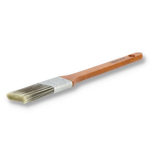 This angled paint brush offers precision for cutting in and trim work. The wooden handle provides comfort and control.